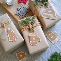 V posledních letech jsem si oblíbila obyčejný kraftový balicí papír, který doplňuji jutovými provázky, přízí na pletení a dozdobím přírodními materiály. Bílým fixem na balící papír maluji jednoduché obrázky nebo jména.