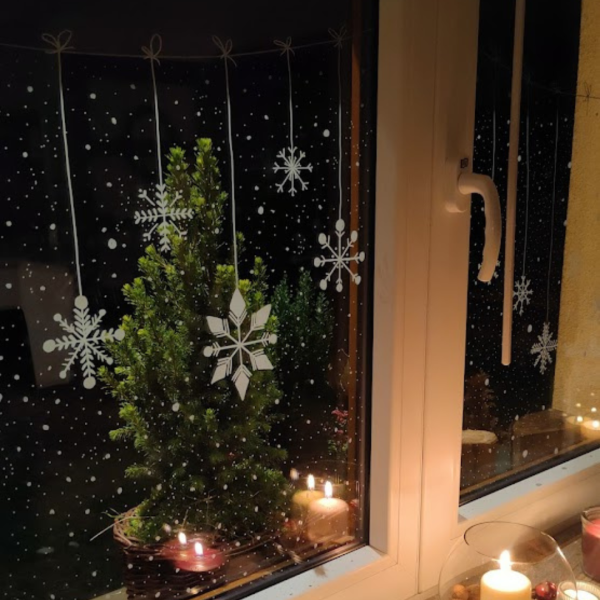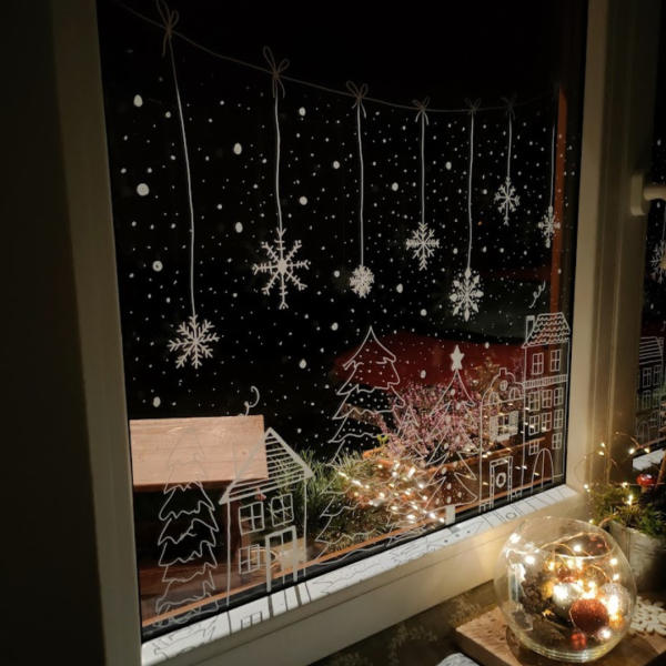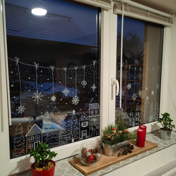 V hlavní roli opět bílý fix a výsledek je opravdu skvostný. Několikrát jsem na Instagram dávala video, jak okna maluji a vždy byl velký ohlas. Podle fotek, které mi moji sledující posílají vím, že jde o velice oblíbenou dekoraci. Malování na okno či sklo dveří bílým fixem je prostě nádhera.
