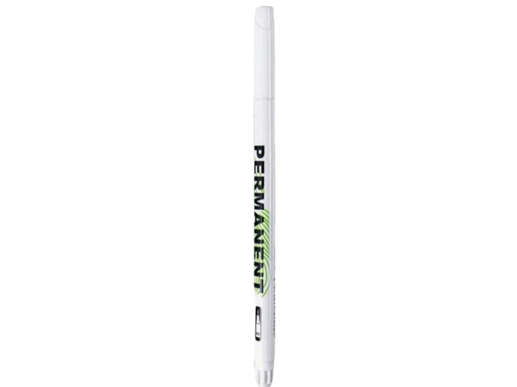Bílý fix s tvrdým hrotem o síle 1 mm.