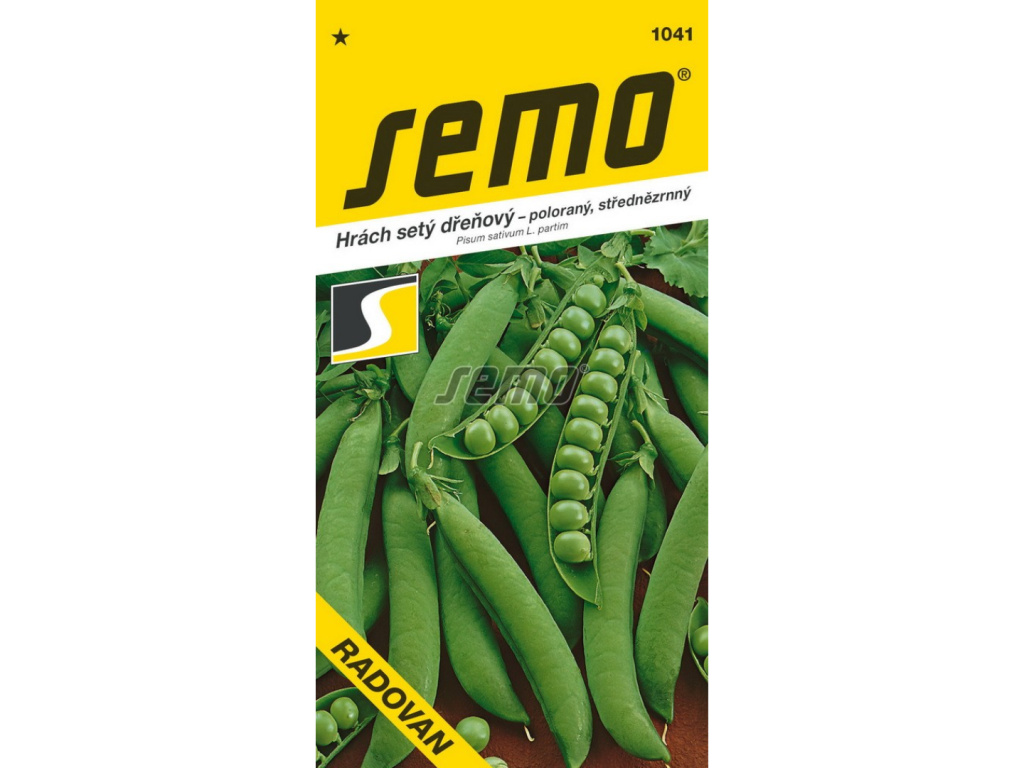 Hrách setý dřeňový Radovan je poloraná odrůda hrachu zahradního. Rostliny dorůstají 60 – 80 cm výšky, mají pevnou rozvětvenou lodyhu se středně velkým listem a menším palistem. Lusky jsou 7 – 8 cm dlouhé, ostře ukončené, se 7 – 8 středně velkými, tmavě zelenými zrny, HTS 190 g. Odrůda je vhodná pro velkovýrobu a průmyslové zpracování, je též vhodná pro drobné pěstitele. Může být náhradou polorané odrůdy David. Tato odrůda hrachu je odolná proti poléhání.