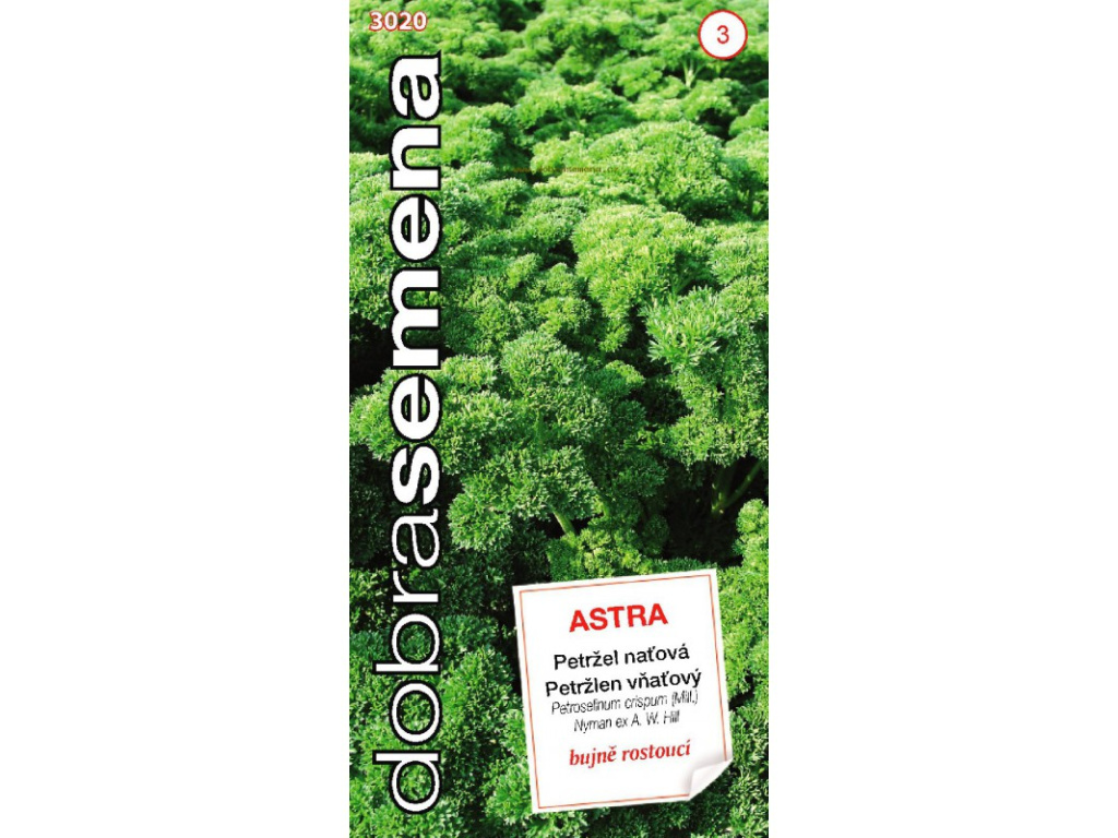 ASTRA – silně zkadeřená, výnosná listová petržel pro celoroční sklizeň natě. Bohatě dělené listy jsou tmavě zelené, hodí se pro přímý konzum, sušení i mražení. Nať po seříznutí intenzivně obrůstá a sklizeň lze po 8 - 10 týdnech několikrát opakovat. Vysévat můžete celoročně, v letních měsících je nutné zabezpečit dostatek vláhy pro vzejití. Vegetační doba z jarních a letních výsevů je 80 - 90 dní, z podzimních 150 - 180 dní. Doporučený pěstební spon je 20 x 3 cm.