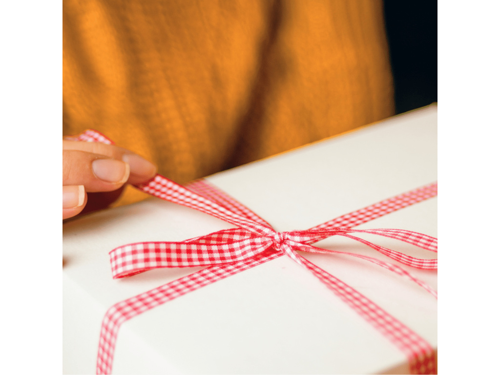 Stuha s kostkovaným vzorem pro balení vánočních dárků nebo tvoření různých vánočních dekorací.