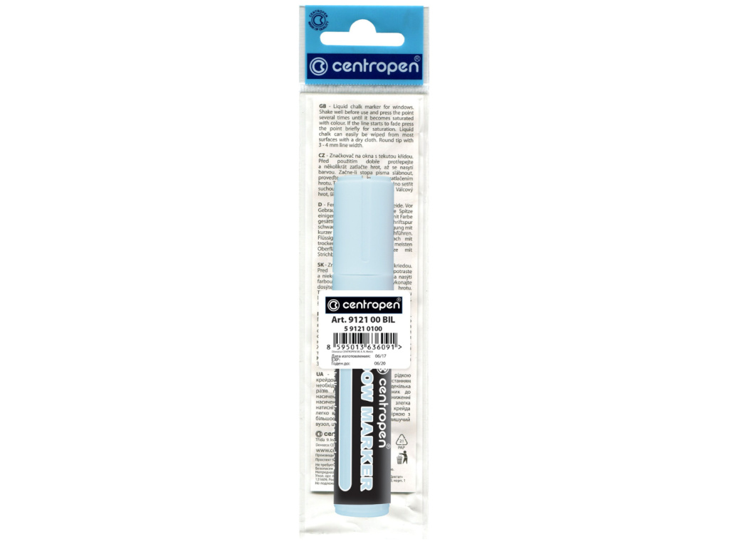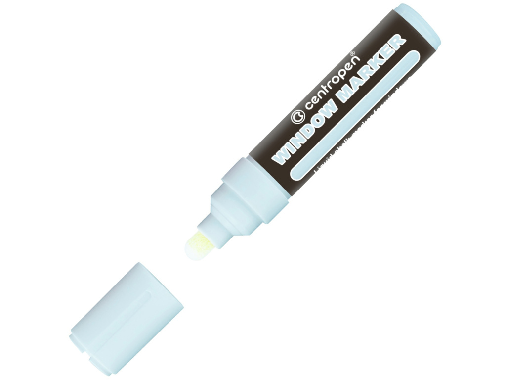Křídový značkovač na dekorativní malování oken nebo výloh. Lze z oken snadno umýt běžným čistícím prostředkem na okna nebo jarovou vodou, po namočení vodou se barva hned rozpouští.